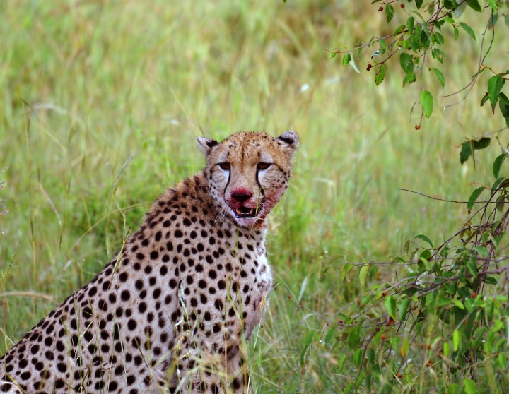 Cheetah right after a meal of gazelle