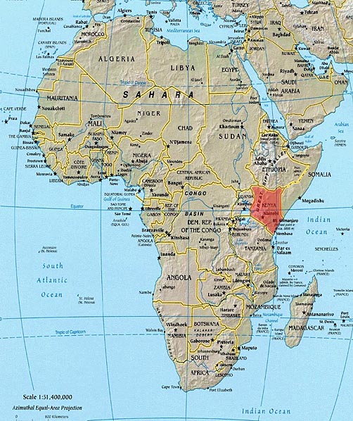 So that you will know a little bit more about where we will be traveling to do this volunteer work for AIDS orphans, I decided to post an entry about the country of Kenya and its people. Kenya is located in the Eastern part of Africa and in the part of the continent referred to as Sub Saharan since it is below the Sahara Desert. As you can see, part of the country is on the coast by the Indian Ocean and the country itself lies on the Equator. Although there are rainy and dry seasons, most of the time the temperature in Kenya is similar to warmest part of our summer. Nairobi, the capital city, is the largest city in East Africa and the orphanage where we will volunteering is located just outside of Nairobi in Karen. In the movie “Out of Africa” Karen Blixen moved to Kenya in 1913, to have a coffee plantation and befriend the local Kikuyu tribe; she later became a famous writer including her writing of the book which became the movie by the same title. The town of Karen is named after her.